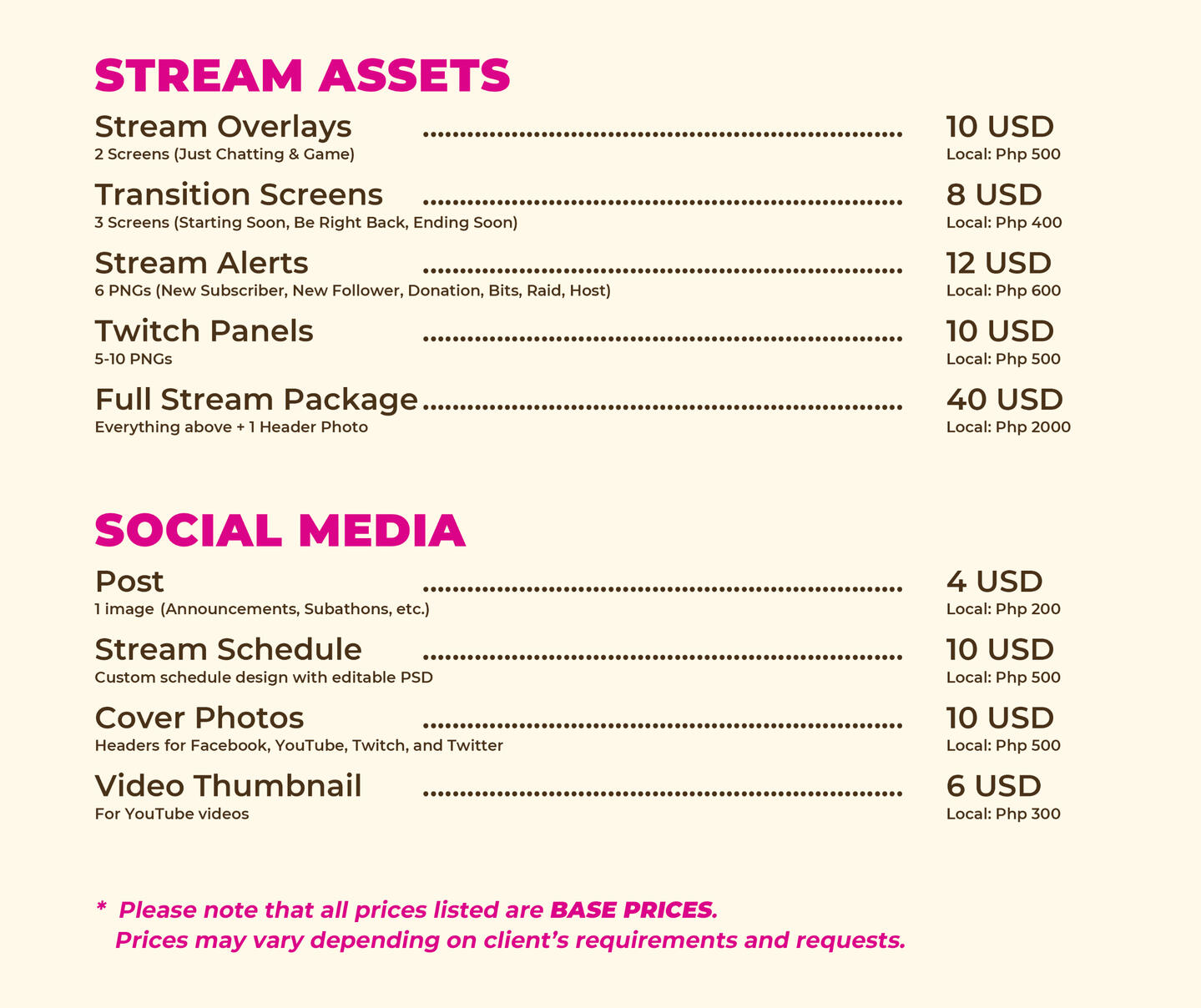 You must credit me when using my designs on your stream by linking my social media on your page.